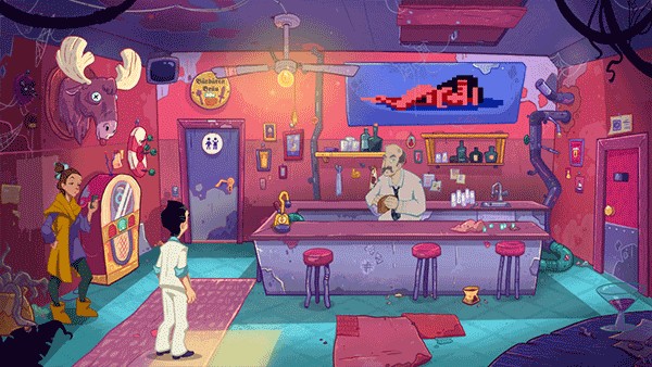 与酒保换威士忌送醉汉得杯垫,解锁密码收集玫瑰。