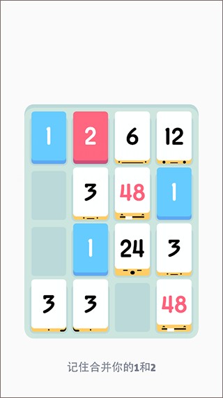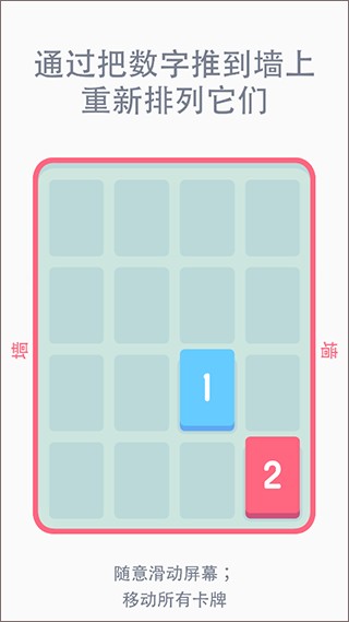 通过滑动将卡片数字组合成3,例如1与2相加生成3。