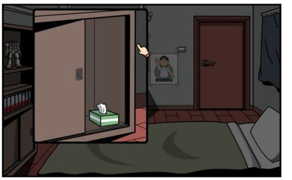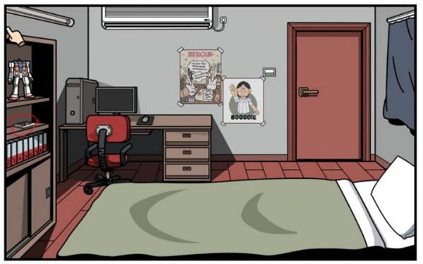 2、零件收集:离开房间前可取纸抽获得头部零件A,共需找齐6个胶达头部组件。