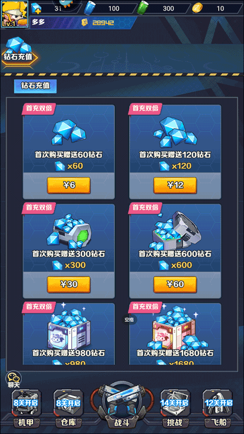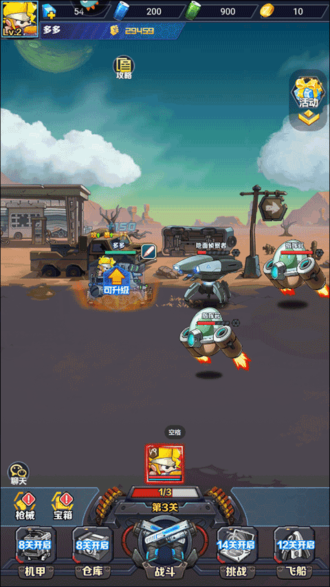 通关第8关并击败BOSS斧首后,机甲系统将全面开放。