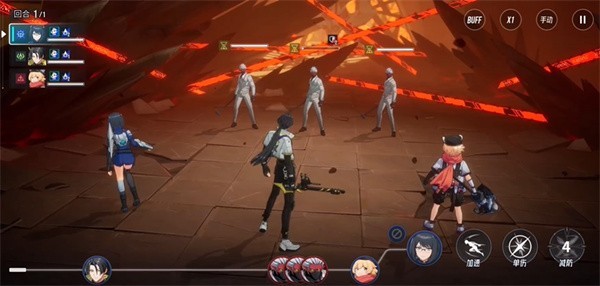 三人编队出战,注意角色搭配,确保作战稳定性。