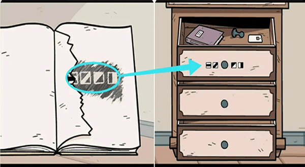 利用符号与图案提示,解锁黄色笔记本获取物件。
