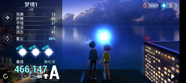 关卡结束会显示得分、连击与失误情况,可选择刷新重试。