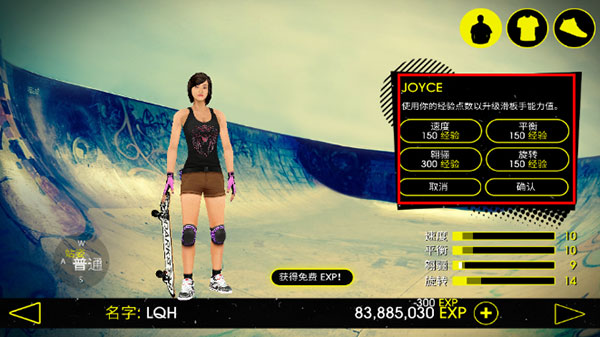 16位滑手可选,装备服饰鞋板等均能随心搭配。