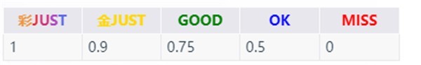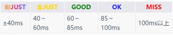 包含彩JUST、金JUST、GOOD、OK与MISS五种判定结果。