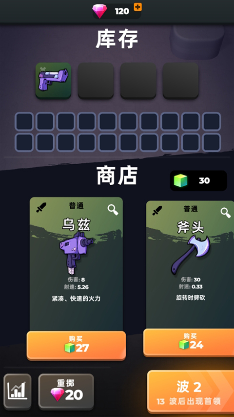 角色会自行开火,玩家需拖动移动躲避敌袭。