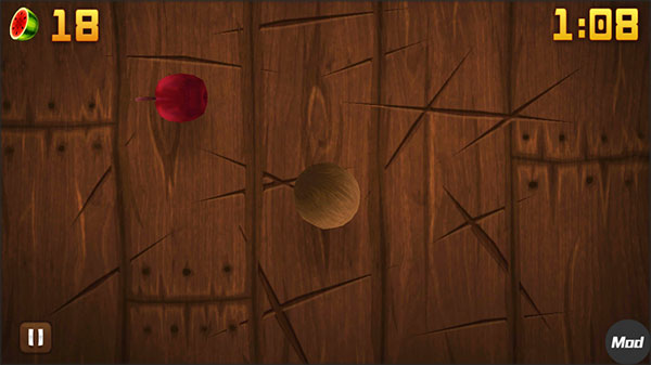 一分钟挑战模式,水果炸弹同时出现,触碰炸弹扣分不终止游戏。