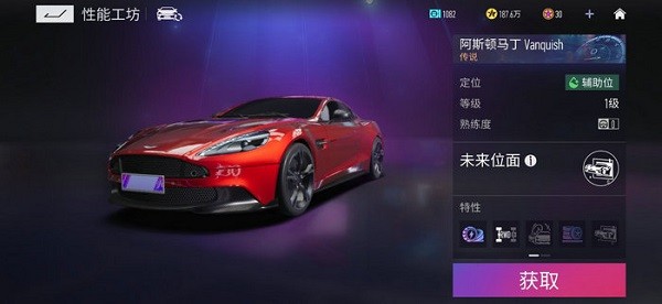 王牌竞速中阿斯顿马丁也是非常值得使用的一辆竞速定位的车辆了,它的起步速度很快,并且技能【闪充】可以提升速度和大量的集气,保证在直线赛道中可以一直处于领先地位,因此大家跑直线赛道多的地图,建议选择它来驾驶哦。