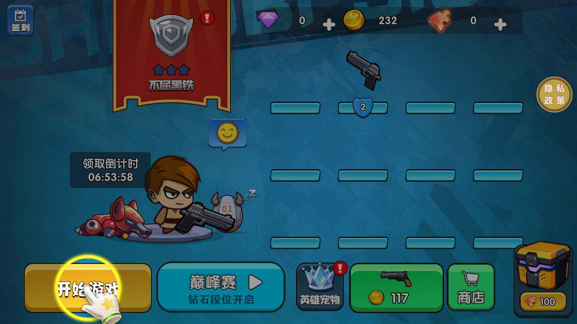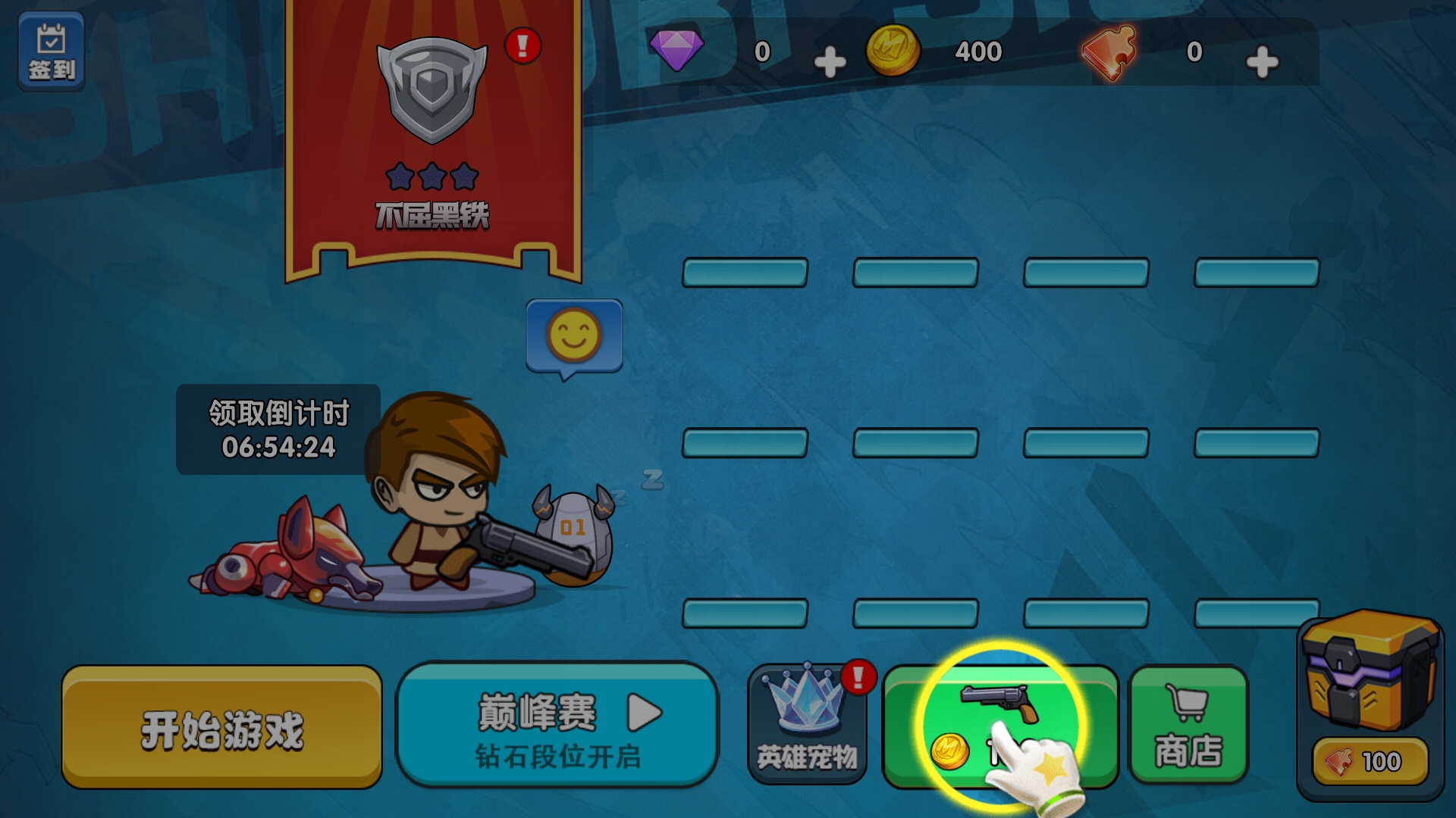 刚进去游戏先别急着开始游戏,可以进行枪合成,从而获得伤害更好的枪。