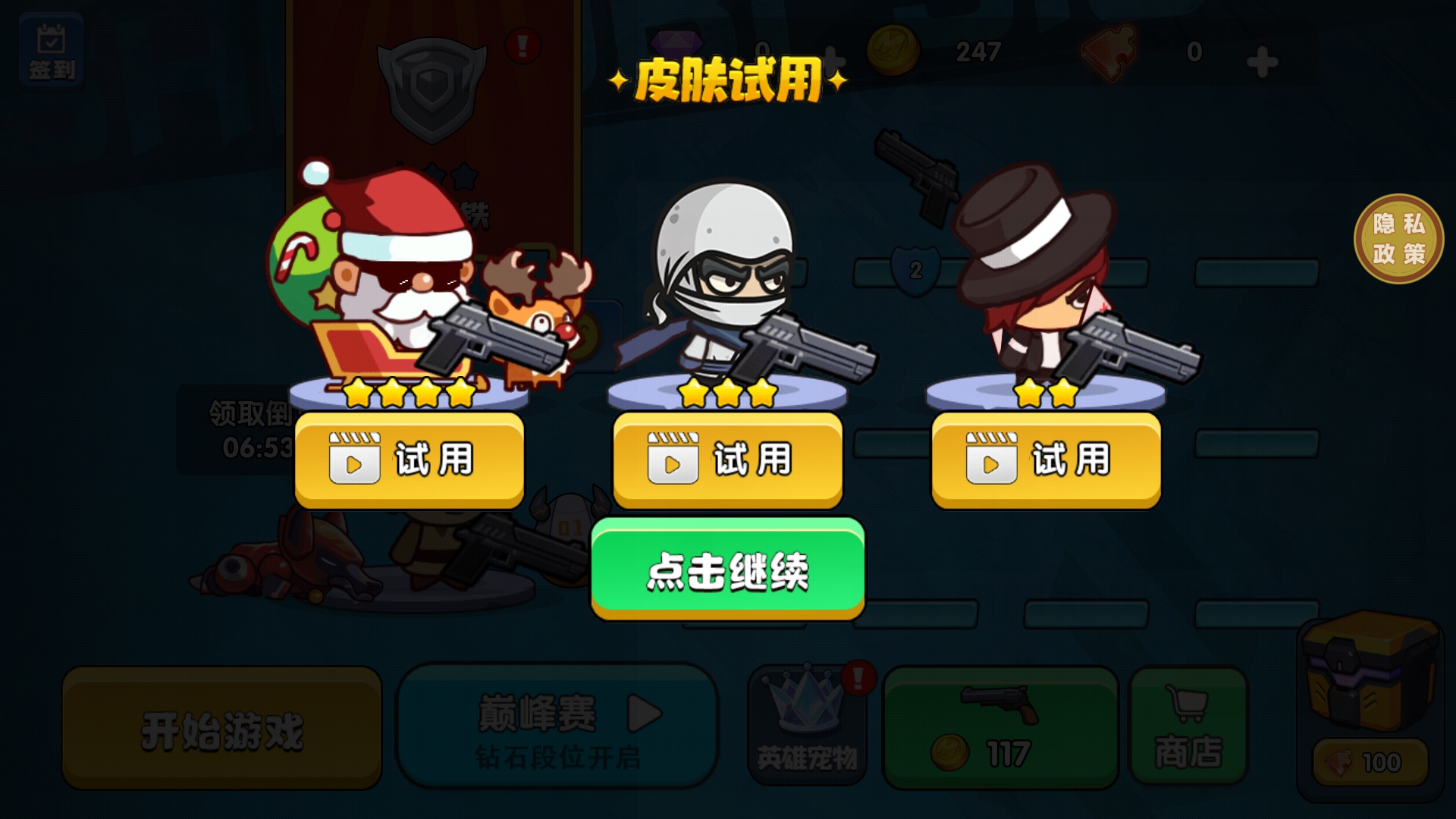 4、每次开局前都可以选择随机皮肤试用,
