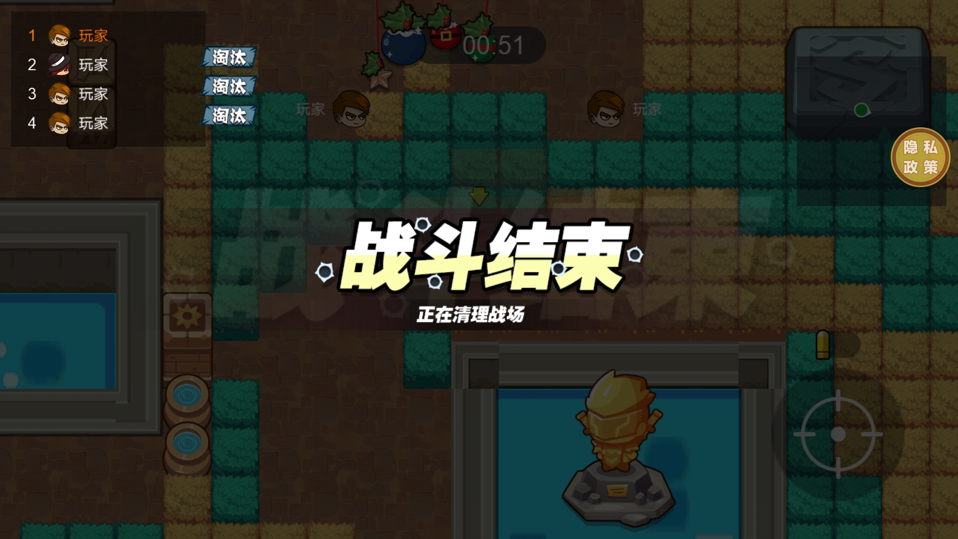 7、当对局中只剩一名玩家的时候游戏将会结束,进入到结算界面,