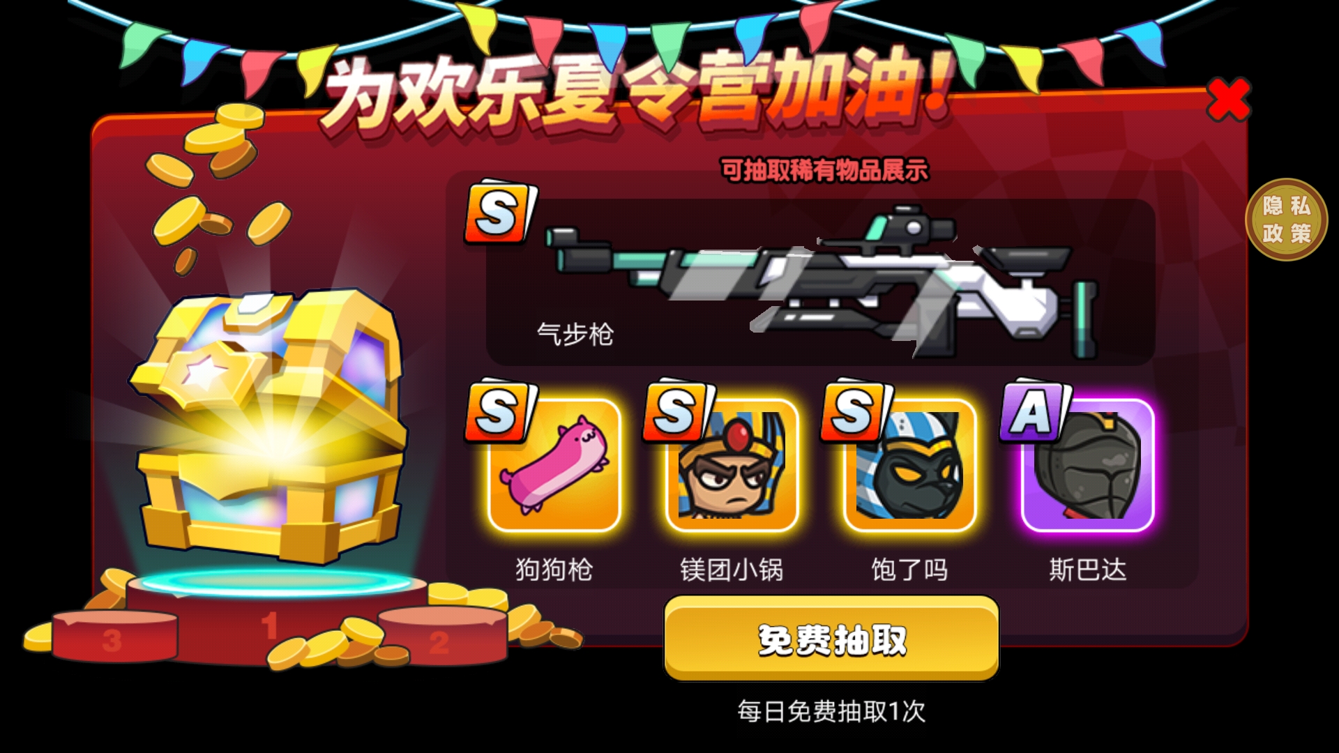 8、玩家每天可以免费抽取一次武器装备,