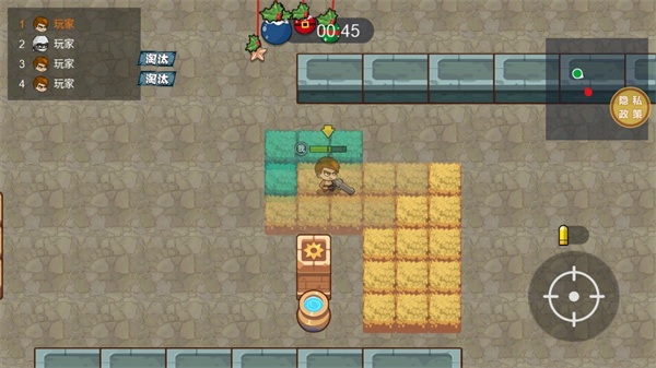 5、我们可以通过左下角的轮盘控制角色移动,右下角的瞄准键进行攻击敌人,