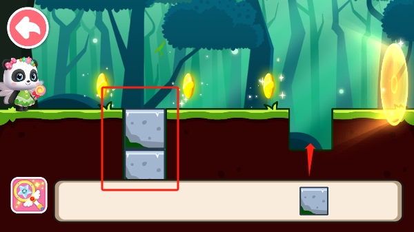 2、第二关将两个正方形石块填满道路上的坑就行了。