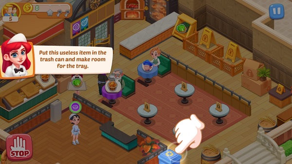 5、设计装饰:都是可以去自由的来设计和装饰餐厅,招募可爱的厨师团队,提升餐厅的吸引力。