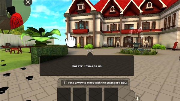 1、未知的大型场景,自由探索,在邻居的房间中收集线索和道具。