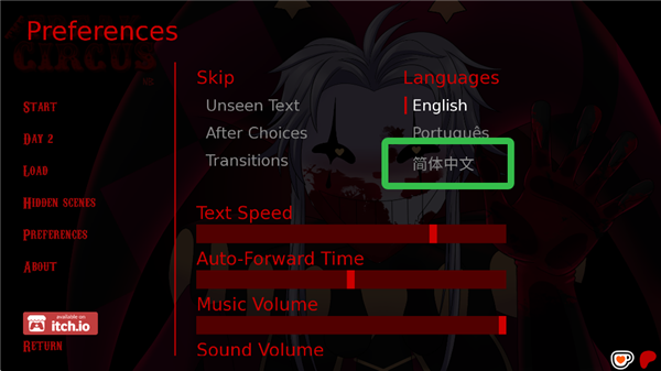 1、进入怪胎马戏团游戏,点击【PREFERENCES】。