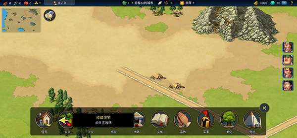 6、有了道路之后,居住民就是一个问题了,所以这个时候可以点击右上角的召集移民的按钮,让我们的人口变多了起来。