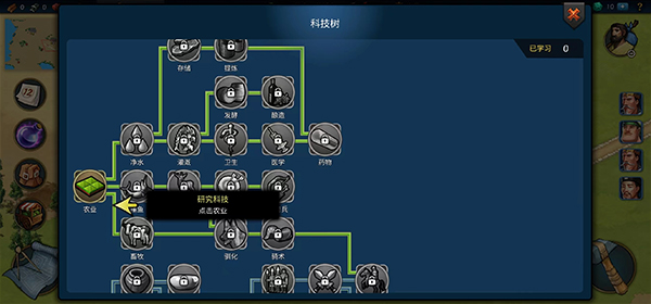 7、之后人口丰富起来了,就是让国家变的更加强大,所以这个时候就需要知识强国了,需要研究科技,点击左边的药品图标来研究科技。