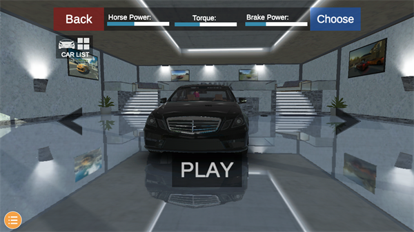 1、打开美国豪车模拟器2026,进入游戏界面,选择右上角【Car selection】,