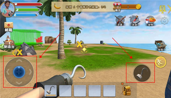 3、在使用左边摇杆用来控制角色移动,右边钩子用来攻击。