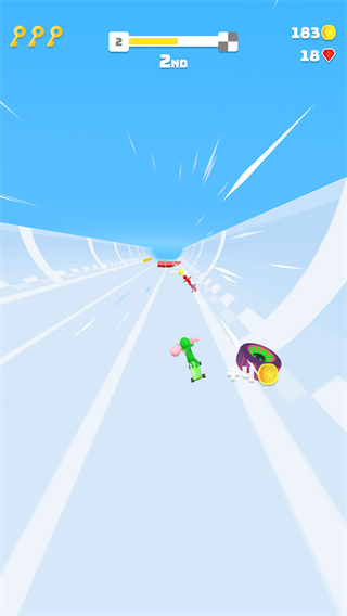 2、玩家灵活的控制橡皮人驾驶滑板在滑道上行驶闯过众多障碍。