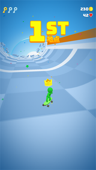 3、玩家使用赚取的金币,去购买更好的滑板,提升自己的优势,夺得冠军。