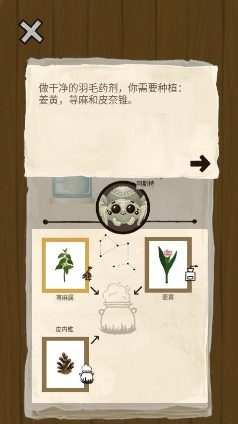 3、玩家的目标是成为一名药剂师,在商店购买制作羽毛药剂的材料,分别是姜黄、荨麻属以及内皮锥。