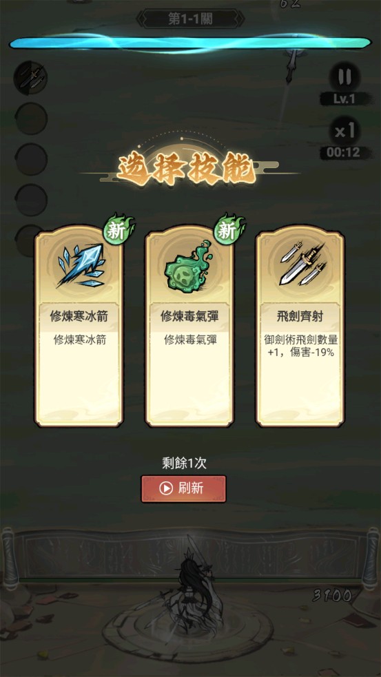 击败敌怪累积经验,每次升级从三项技能中挑选一项提升能力。