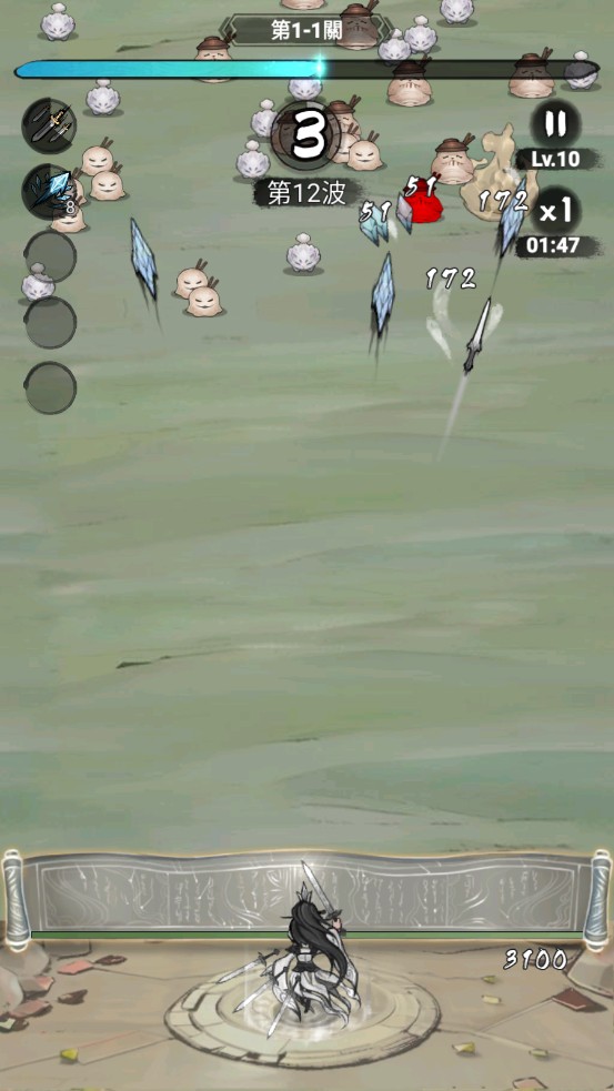 敌方魔物逐渐出现,角色全程自动攻击,持续时间越久难度越高。