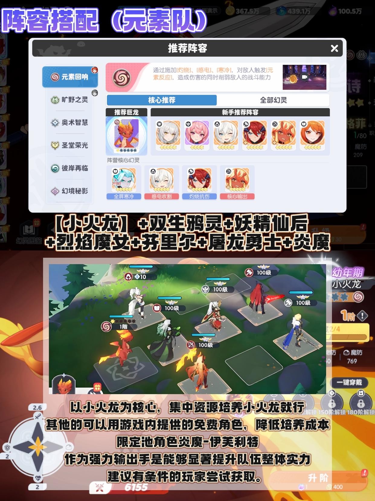 小火龙配合芬里尔与炎魔,主打技能叠加与持续输出,适合资源集中养成路线。