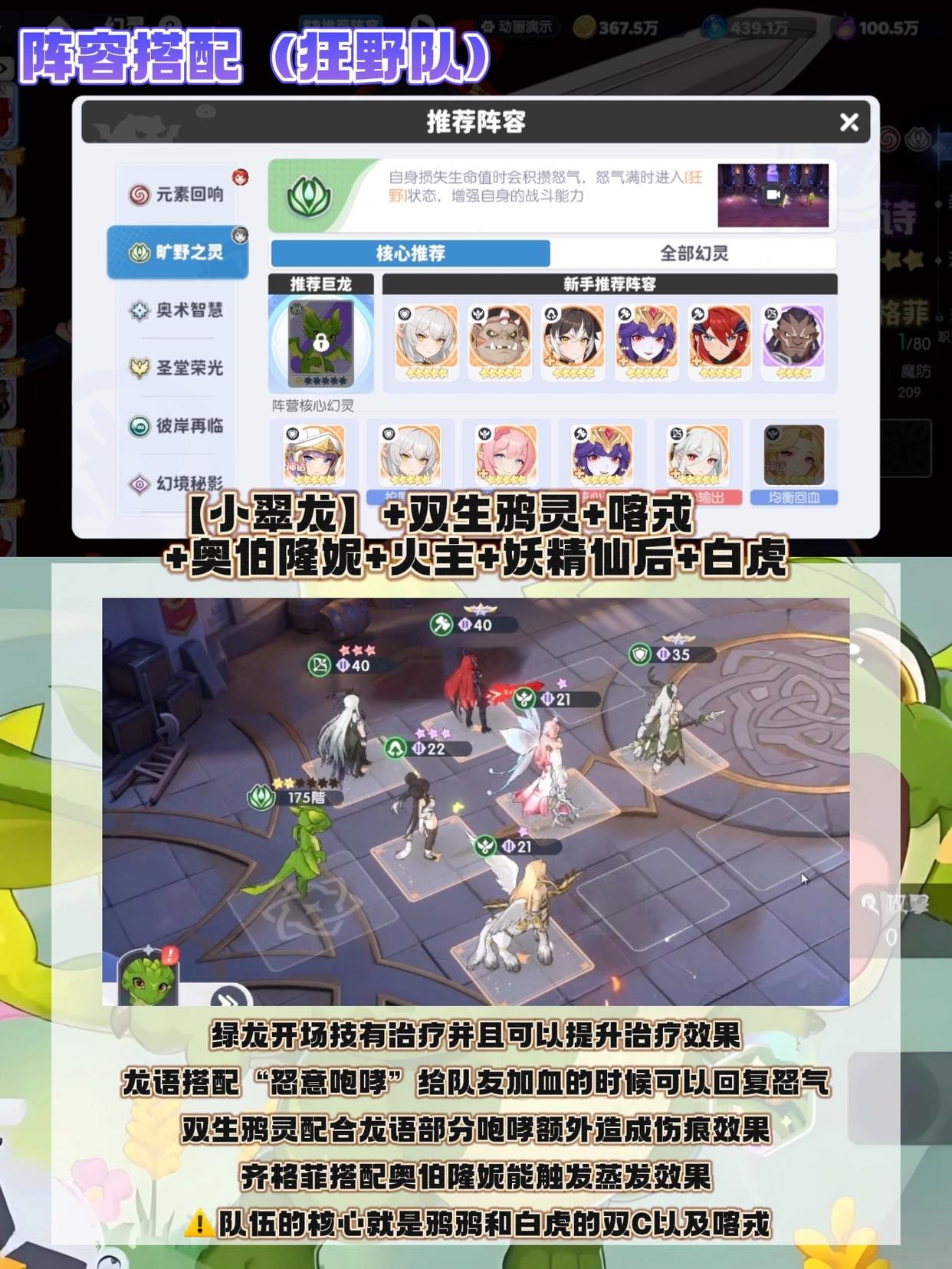 小翠龙搭配鸦灵与白虎,结合喀戎与奥伯隆妮,构建高续航高爆发协战组合。