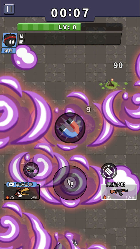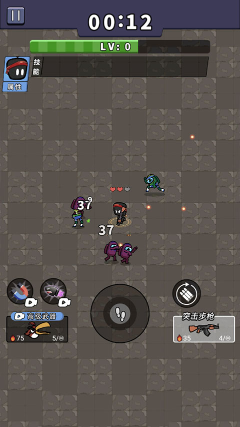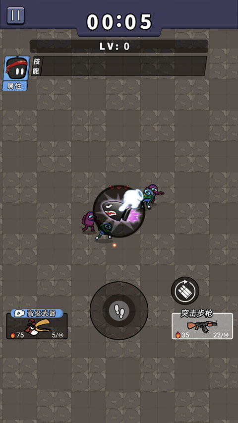 2、滑动摇杆躲避袭击,保持间距,主角自动开火并自动补充弹药。