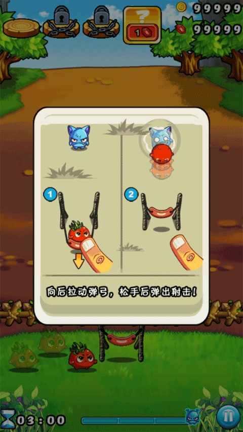 4、进入游戏后,玩法很简单,玩家需要透过手指拉动弹弓来进行射击;