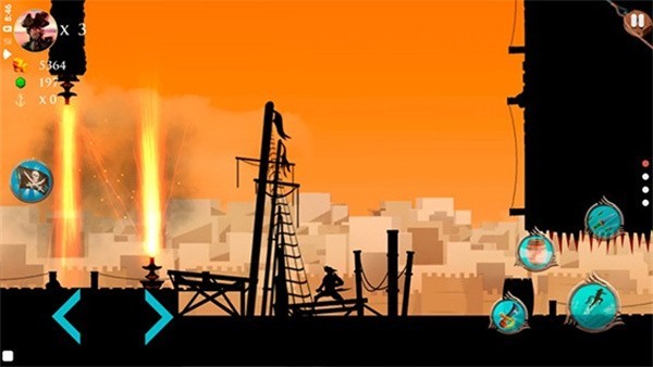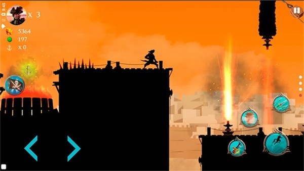 2、左下角的方向键可以控制角色的左右移动,右下角的按键则可以跳跃或使用武器。