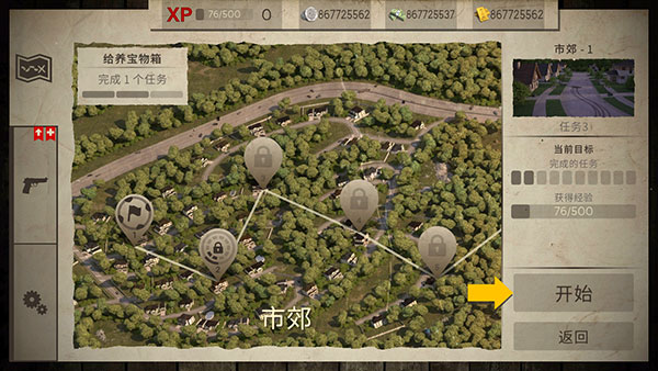 2、点击市郊作为首战地点,随后点击开始正式进入战斗。