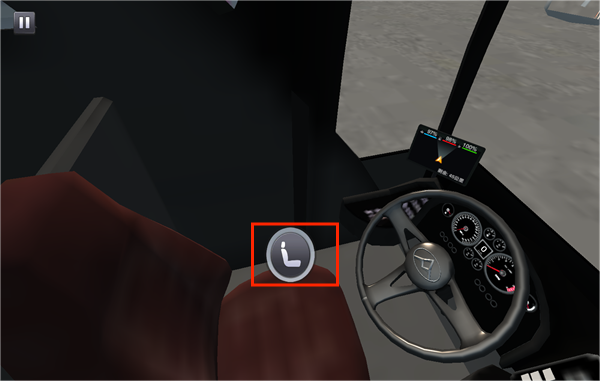 3、点击指令进入驾驶室,准备车辆启动操作并控制方向盘。