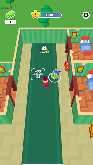 3、安排好房间给客人,他们住完后,要及时清理打扫,才可以继续接待客人,移动小人靠近待清理的地方,就可以自动清理了。
