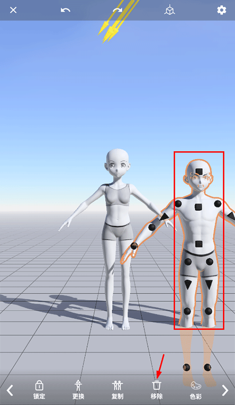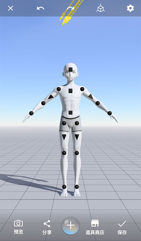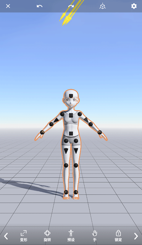 1、玩家可以拖拽人偶上的控制点摆造型,游戏系统会自动将其调整为玩家想要的动态姿势。