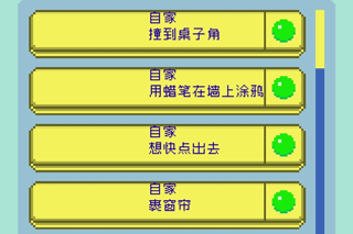 3、儿子用蜡笔在墙上涂鸦,玩家可以“责备”或“品评”。