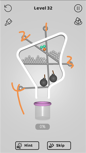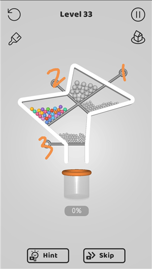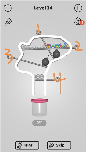 别针大师中文版是闯关类益智休闲手游,玩法非常简单,几乎动动手指就能完成所有操作,轻松又上头。在游戏中,玩家需要运用一点物理小常识,把从上方掉落的小球顺利收集到一起。透过移动别针的方式,避开各种障碍和陷阱,尽可能别让小球在中途掉落或损失。只要能把全部小球安全送到瓶子底部,就算通关成功。别针大师中文版使用清新可爱的卡通画风,看着就很治愈。而且关卡设计非常丰富,虽然操作看起来很简单,但越玩越有挑战,稍不留神就可能翻车,特别考验你的观察力和动脑能力。