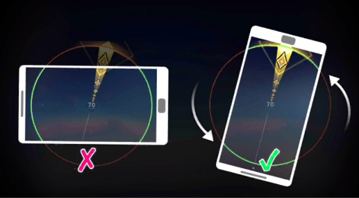 请双手握持设备并抬高约30度以上,避免平放影响旋转识别。