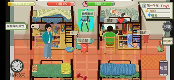 6、玩家每天可以学习六个课程,但学习压力过大会造成心情和健康的降低。
