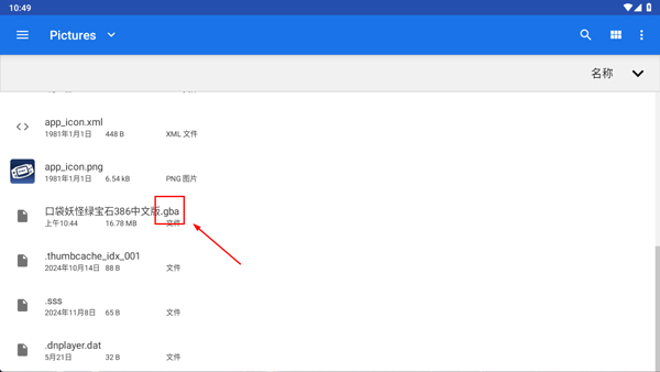 2、找到要导入的gba游戏,需要自己下载准备(后缀为.gba的文件)。