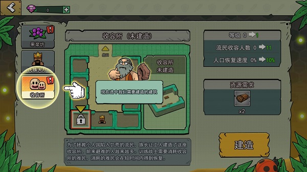 1、玩家想要建造建筑时,只要点击左边的建造按钮即可建造。