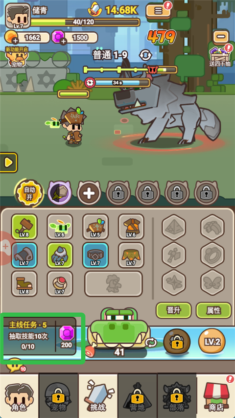 1、依照系统引导完成主线任务,快速熟悉玩法,解锁主要功能。