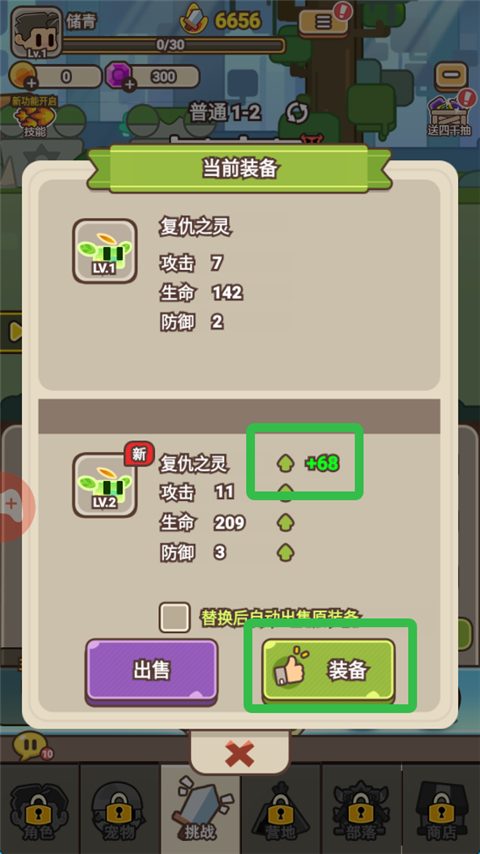 4、获得高品质装备后可一键替换原件,属性对比清晰,升级更便捷。