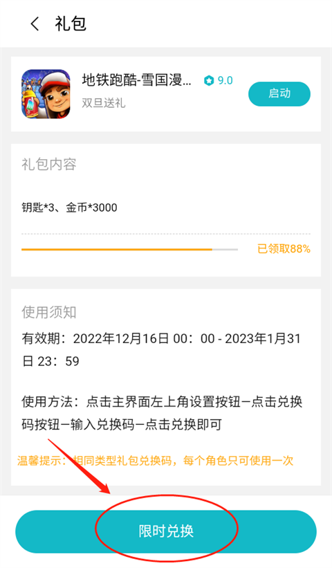 3、在福利页面中选择限时兑换,即可参与礼包领取。