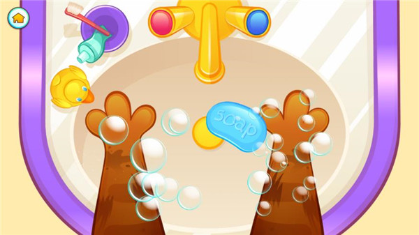 3、点击浴室,给脏脏的Bubbu洗个澡。还能擦出透明的泡泡浴。