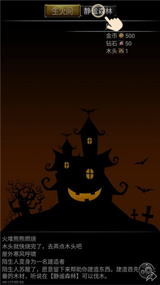 1、进入游戏后作为主角置身于一个阴冷黑暗的小黑屋中,可以先生堆火。